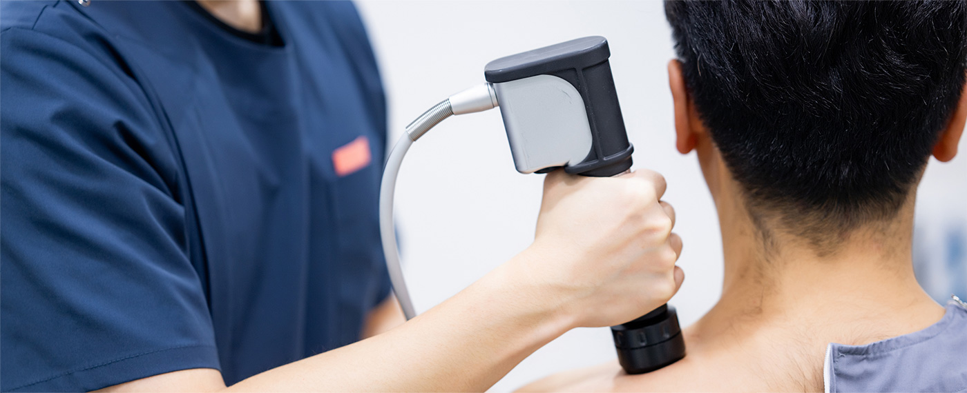 만성 조직 손상이 발생한 근육, 힘줄, 인대 및 주위 혈관 등에 충격파 에너지를 가하여