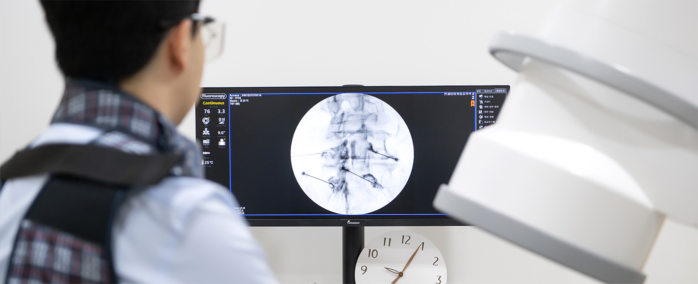 통증을 일으키는 척추 신경에 영상투시 정밀 장치 (C-ARM) 혹은 초음파 장치를 통해 찾아내고,
